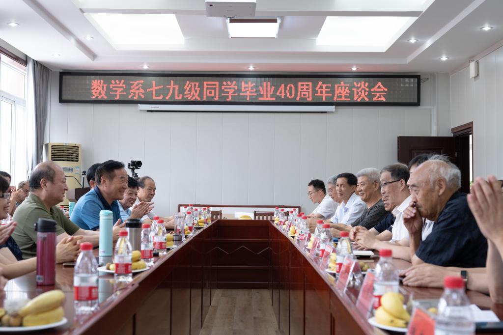 四十载时光荏苒,再聚首风采依旧。7月15日,数学系79级校友从全国各地回到母校举办毕业40年师生座谈交流活动,追忆青春岁月,重温同窗情谊。校长李俊、党委副书记、工会主席岳宗德、副校长王娟,原校长钱远晏、原数学系领导、老师及太阳集团城娱8722相关负责人60余人参加座谈会。