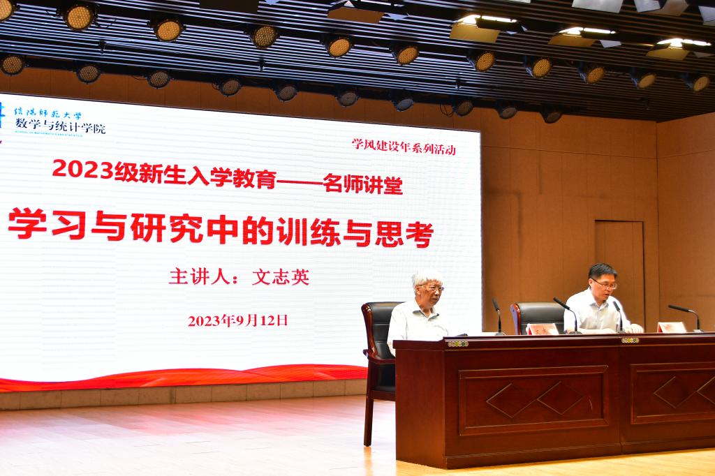 2023年9月12日下午,太阳集团城娱8722在理科楼报告开展新生入学教育活动,作为学院学风建设年系列活动之一,学院邀请清华大学文志英教授做了 “学习与研究中的训练与思考” 为题的专题报告,院长蔡礼明、副书记刘丰铭、新生班主任及2023级全体同学参加,报告由蔡礼明主持。