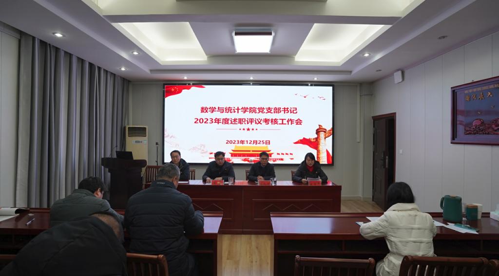 12月25日下午,太阳集团城娱8722在数学楼315会议室召开2023年度党支部书记述职评议考核工作会,学院领导班子、各党支部书记及支部委员参加会议。会议由党委副书记刘丰铭主持。