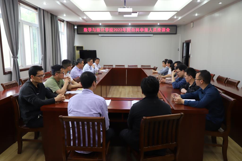 4月22日下午,我院在数学楼315会议室召开2022年国家自然科学基金项目申报人员座谈会,院长蔡礼明,副院长韩英波和2022年国自科申报人员参会,会议由副院长陈越奋主持。